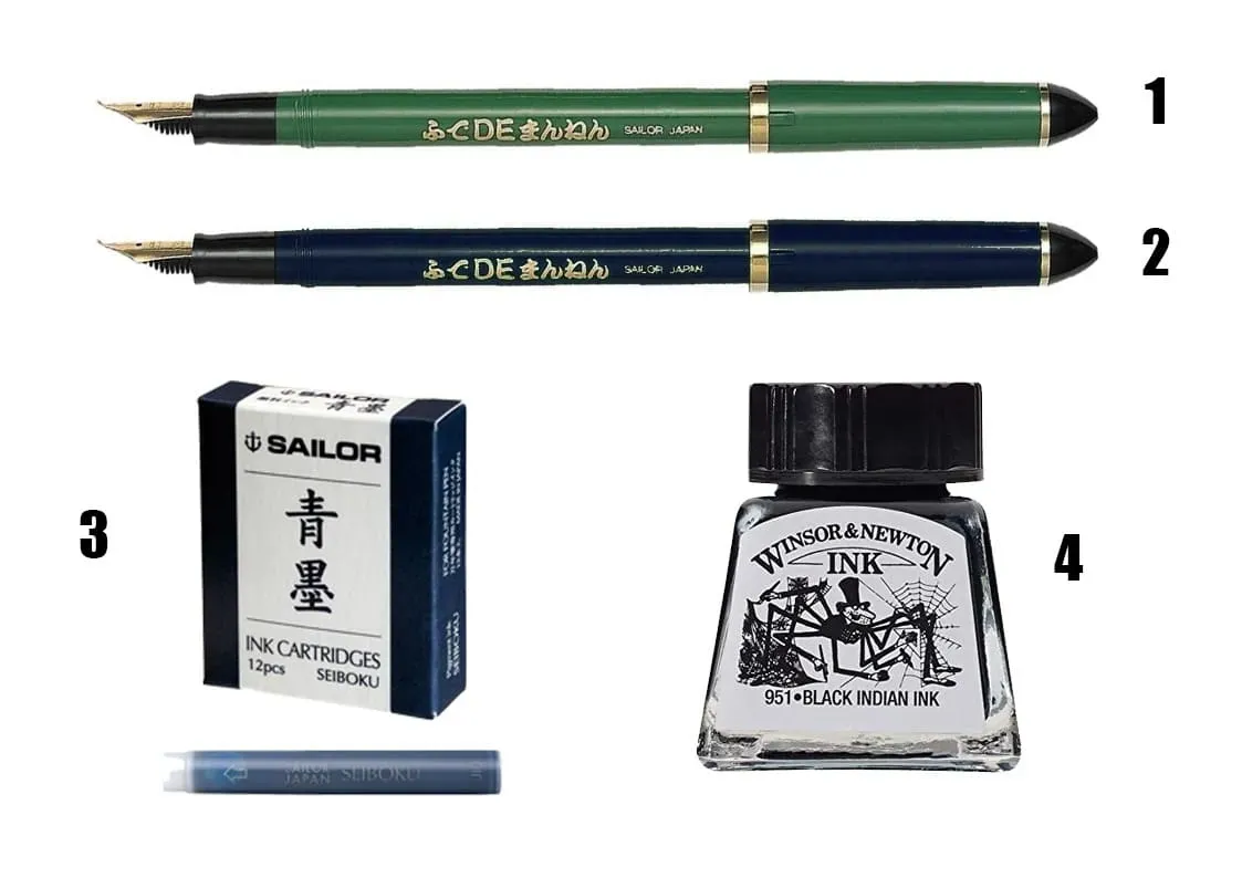 For sketches, I use waterproof ink pens or wooden sticks with waterproof ink (important)