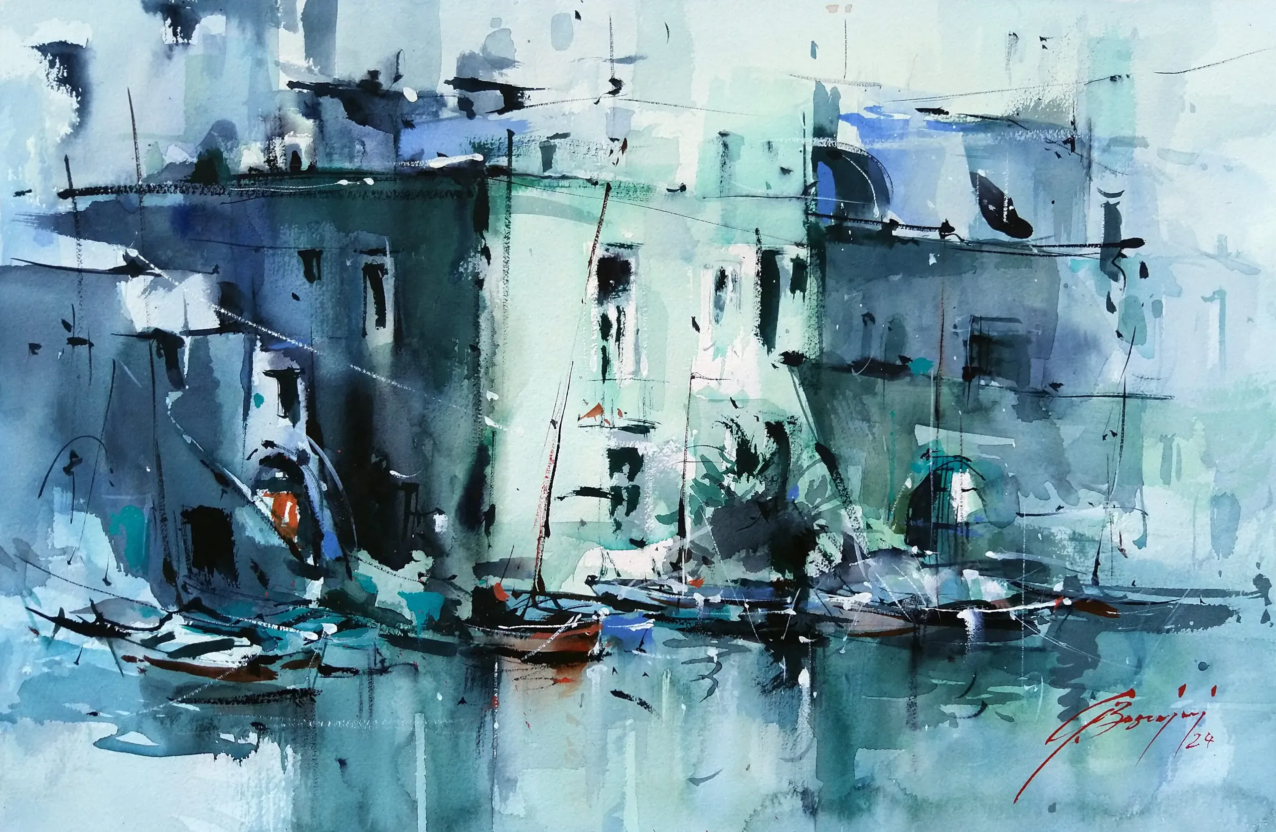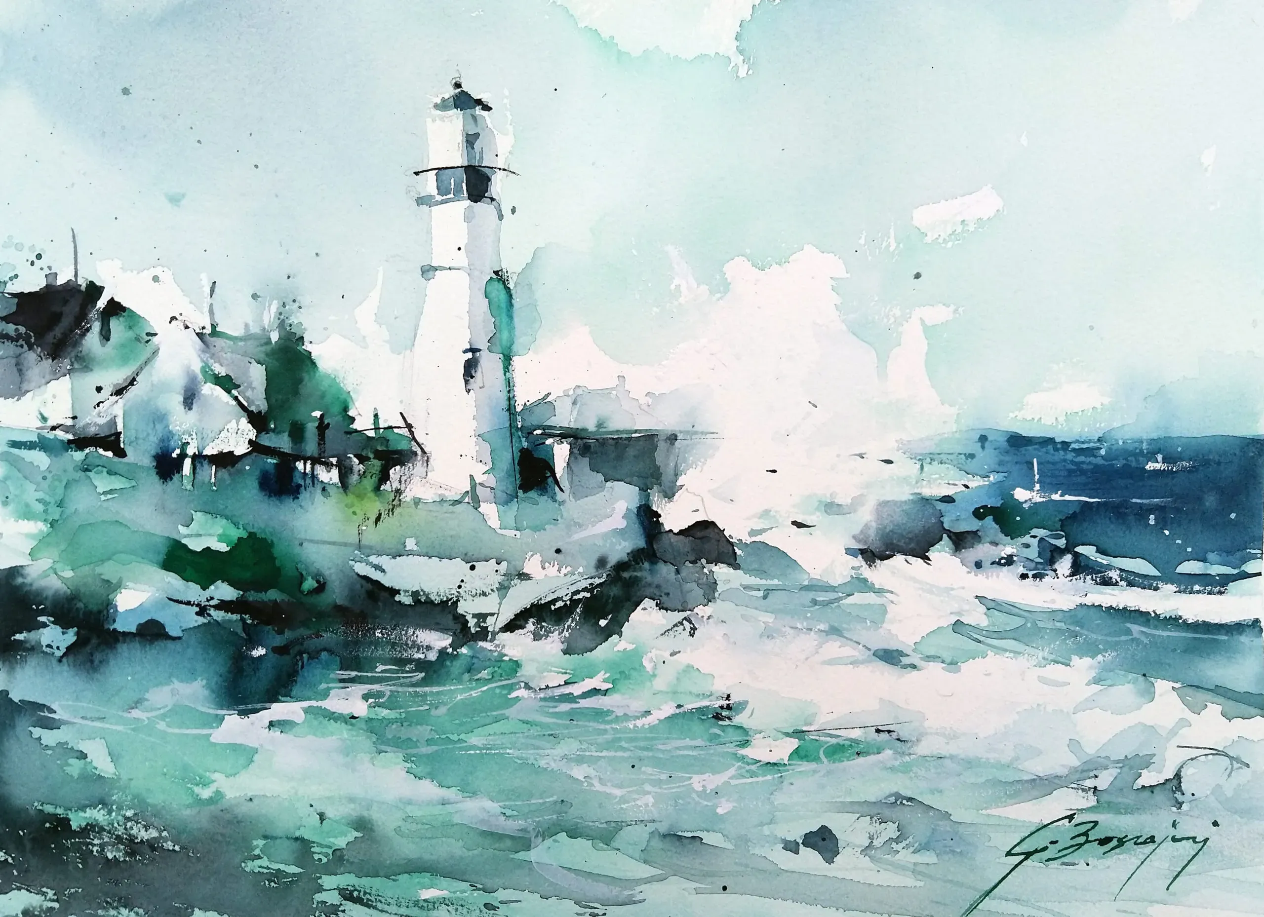 L’acquerello è per me un momento di meditazione in cui la mente logica viene annullata, un momento di non-pensiero, che mi permette di trarre energia e calma dallo spazio. Devi diventare fluido come l’acqua per accogliere questa imprevedibilità dentro di te come qualcosa di positivo.