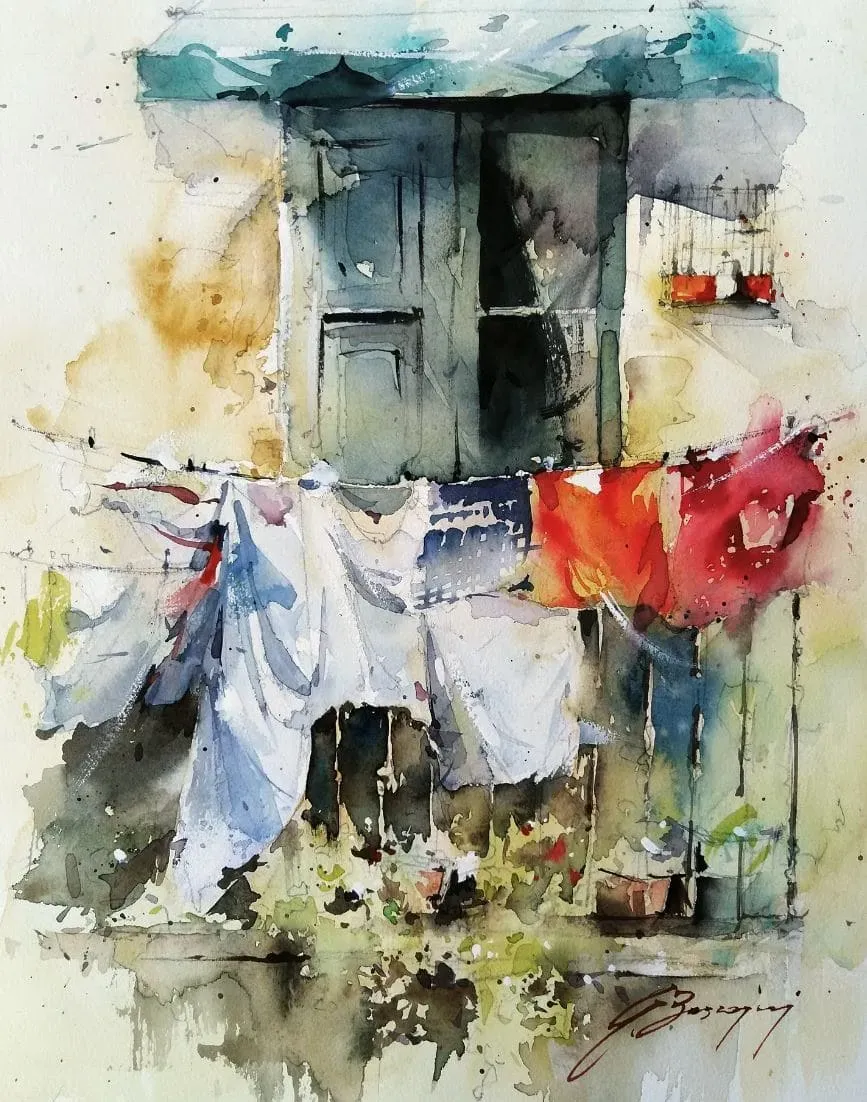 Paper: I generally use Fabriano Artistico (NEW SERIES) – Lanaquarelle. Fine or satin grain, yes. I don’t use coarse grain (rough).