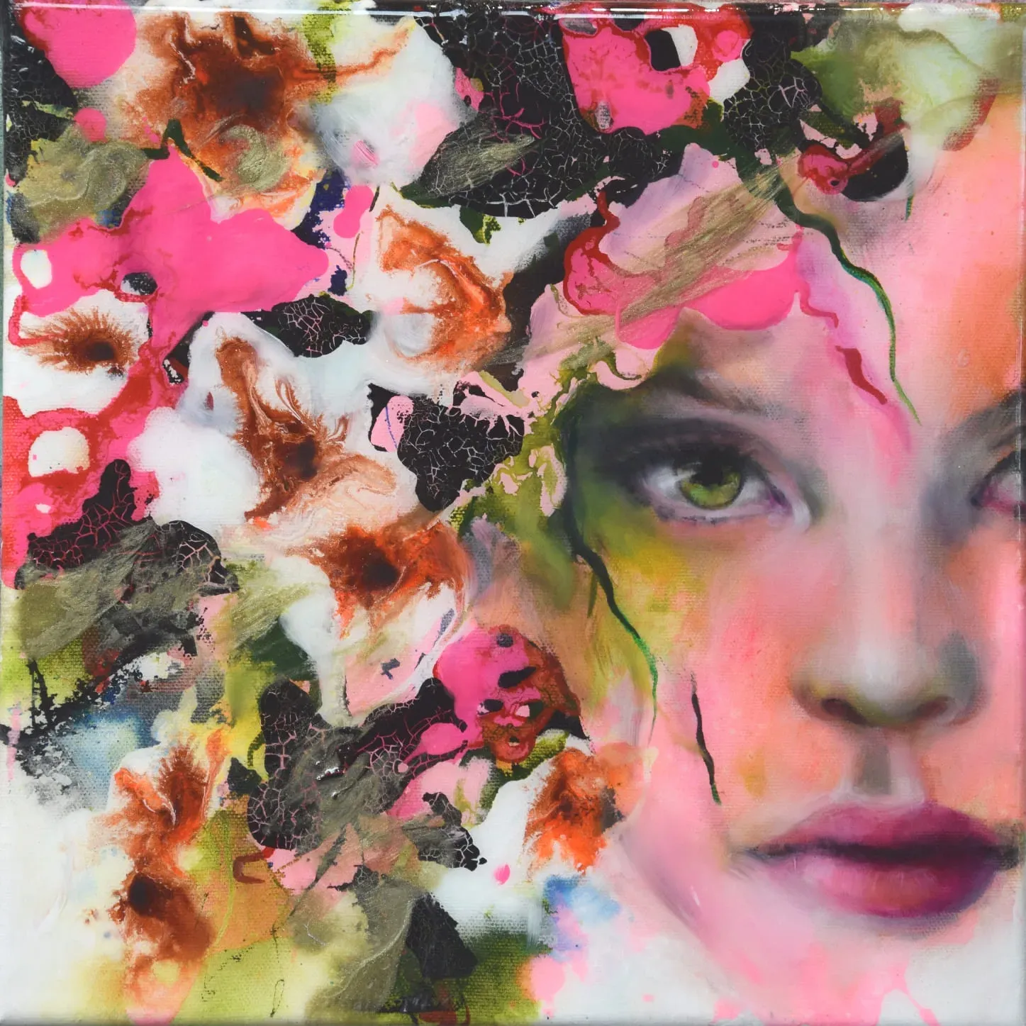 In Öl auf einer Kombination aus Acrylfarbe, Tusche, Airbrushfarbe und Acrylic Ink.